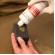 De kleur kunt u met een spons gelijkmatig van stiknaad tot stiknaad aanbrengen op de beschadigde gebieden en droog indien mogelijk na met een föhn. Bij een geringe schade volstaat de behandeling van de plek of de kras.. Als u een bijzonder hoge dek capaciteit nodig heeft, voornamelijk bij lichte kleuren, moet de bewerking in meerdere lagen aangebracht worden, die tussendoor met de föhn te drogen zijn.